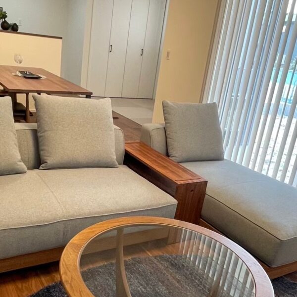 浜松市内の工務店様より、施主様のご新築完成見学会用に家具のレンタルをご依頼いただきました。今回は、ウォールナットの床材と木目の美しい家具で、シンプルながらも上質さを感じる事例をご紹介します。