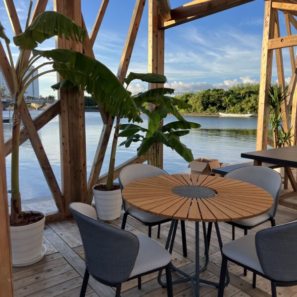 浜名湖の美しい水辺を背景に、ゆったりとした時間を過ごせるリゾートテイストの家具をセレクト